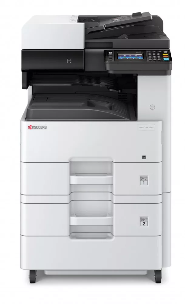 *A3 Mono Mfp, 25 lap/perc A4; 12 lap /perc A/3, 600 dpi; Duplex, 500+500+100 lap, 1GB memória (max 3GB+128Gb SSD) , PCL, PS3, Gigabit Ethernet, USB 2.0 *Másoló( 50 lapos DADF, 600dpi) *Színes szkenner(600 dpi, 50 kép/perc-Bw300dpi, 50 kép/perc color300dpi) * Egyéb( USB pendrive slot, 11cm érintőkijelző) ), *256 gramm lapkezelés Opciók(Fax, kártya, Finisher, Papírfiókos gépasztal /500 lap vagy 2*500 lap/, 1Gb memória) Kellékek(induló:3K) TK6115 Bk 15K , MK6115 MK kit, MK6115 DP MK kit.